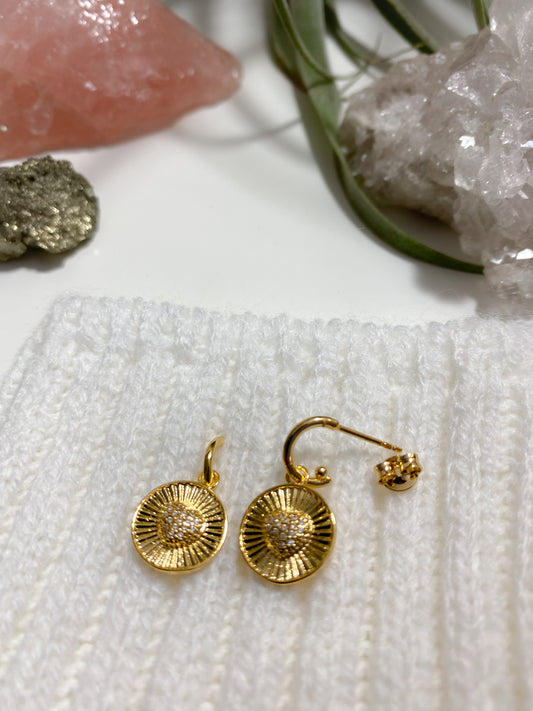 Spoke Texture Heart Charm Cubic Zerconia Earrings