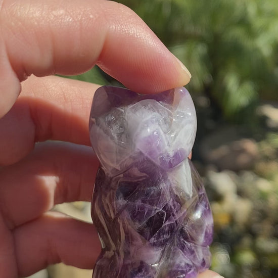 Amethyst derives from the Greek for “to be intoxicated” and was worn to prevent drunkenness. Promoting love of the divine, Amethyst encourages selflessness and spiritual wisdom. Opening multidimensional awareness, it enhances metaphysical abilities and is an excellent stone for meditation and scrying. Sleeping with Amethyst facilitates out-of-body experiences, helps dream recall, and assists visualization. It guards against psychic attack, transmuting it into love. A natural tranquilizer, Amethyst blocks geopathic stress and negative environmental energies. Harmonizing the physical, mental, and emotional bodies and linking them to the spiritual, it purifies the aura. Amethyst is helpful for people about to make the transition through death and supports coming to terms with loss. This stone has a sobering effect on overindulgence and overcomes addictions. Beneficial to the mind, it calms or stimulates as appropriate, helping to feel more focused, assisting assimilation of new ideas, and connecting cause with effect. Amethyst enhances memory and improves motivation. This stone balances emotional highs and lows.