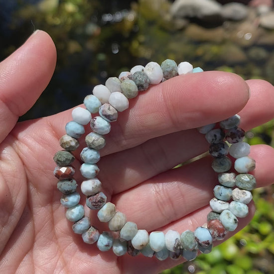 Inspiring Larimar is deeply nurturing, radiating love as it restores your strength especially after extended spiritual work, harmonizing body and soul to new vibrations. Effortlessly inducing a deeply meditative state, it guides the soul on its true pathway. Larimar releases self-sabotaging behavior, self-imposed bonds, and inappropriate burdens, and removes attached entities. Awakening inner wisdom and the ability to manifest, when moving through periods of stress and change, it enables challenges to be met with equanimity. Larimar draws a soulmate to you, healing relationship karma or heart trauma. An antidote to emotional extremes, it reconnects joyful childlike energy. Stimulating creativity and encouraging “going with the flow,” Larimar brings calmness and equilibrium. This stone connects to the energy of the earth goddess, helping women reattune to innate femininity and restoring connection with nature. Dissipating geopathic stress and blockages, it is excellent for earth evolution and healing.