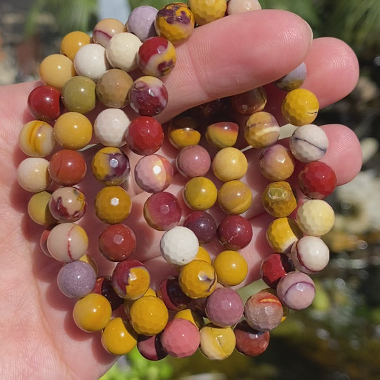 Shamanic Mookaite has a powerful link to the Dreamtime and ancestral wisdom. A nurturing stone that supports and sustains during times of stress, it brings peace and wholeness. Encouraging versatility, it helps you accept change and new ideas, discover all possibilities in a situation, and choose the right one. It provides a protective energy that helps block unwanted outside influences due to it’s grounding properties.