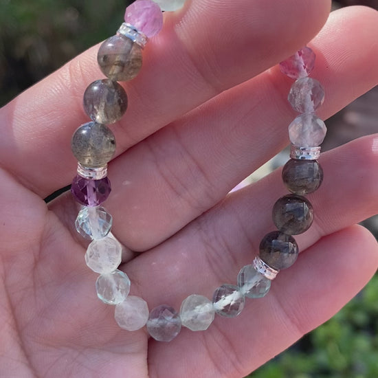 Labradorite's most renowned quality is known as labradorescence. This is what makes the stone transform from a bluish-gray to a show of neon illuminations in light.